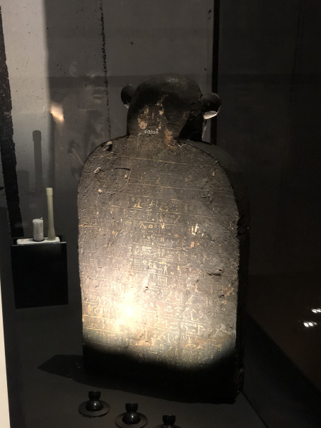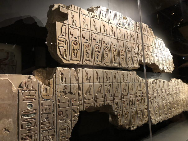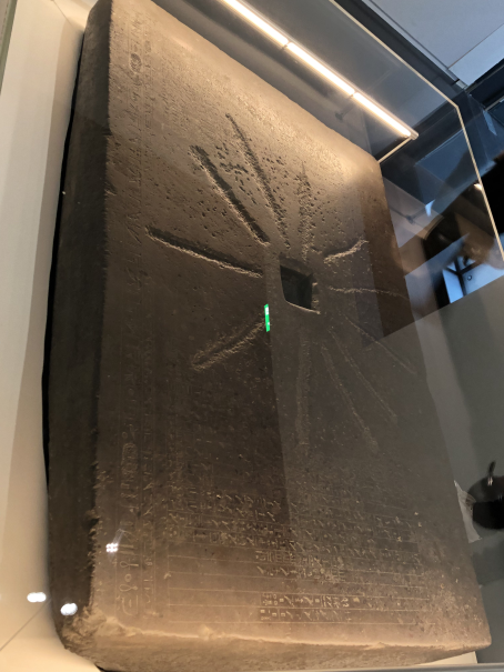 The last thing you see as you exit the exhibition is a stone, partly destroyed by later reuse, which tells a world creation story in which Ptah creates the world by reading aloud the names of gods, people, cities and temples - in other words, the world created by logos.