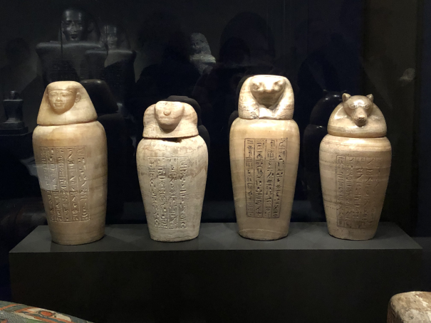 This particular set of jars, the description says, has been reunited for the first time since the 1700s. The mummy owner of the intestines (a woman, also present in the exhibition) must have been really annoyed in the meantime. Now that all the parts are in one place, will the Mummy rise again?